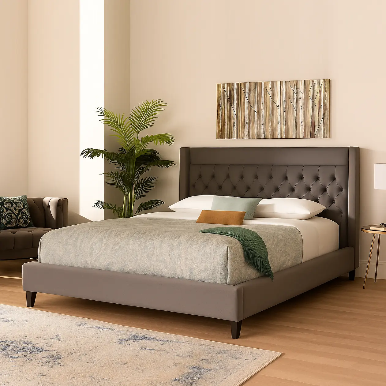 - Material: Solid wood, foam, fabric
