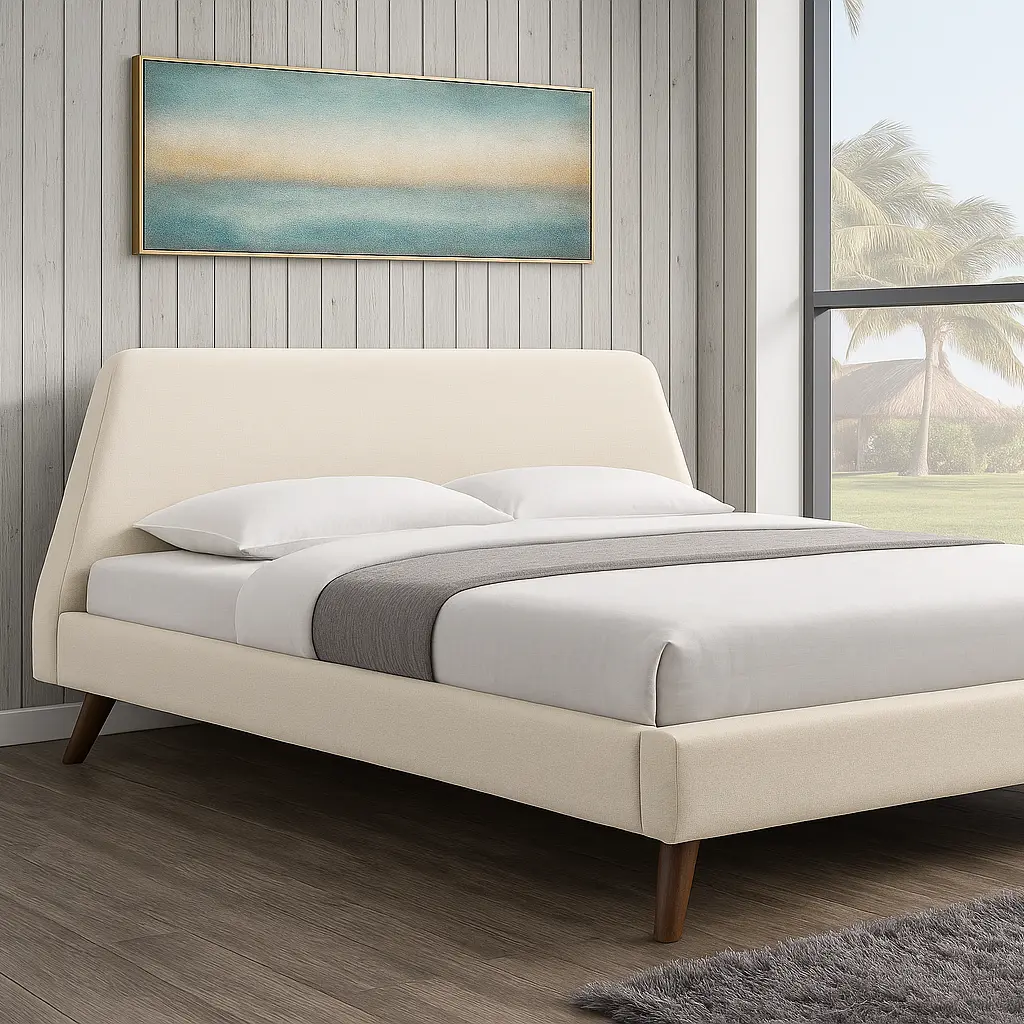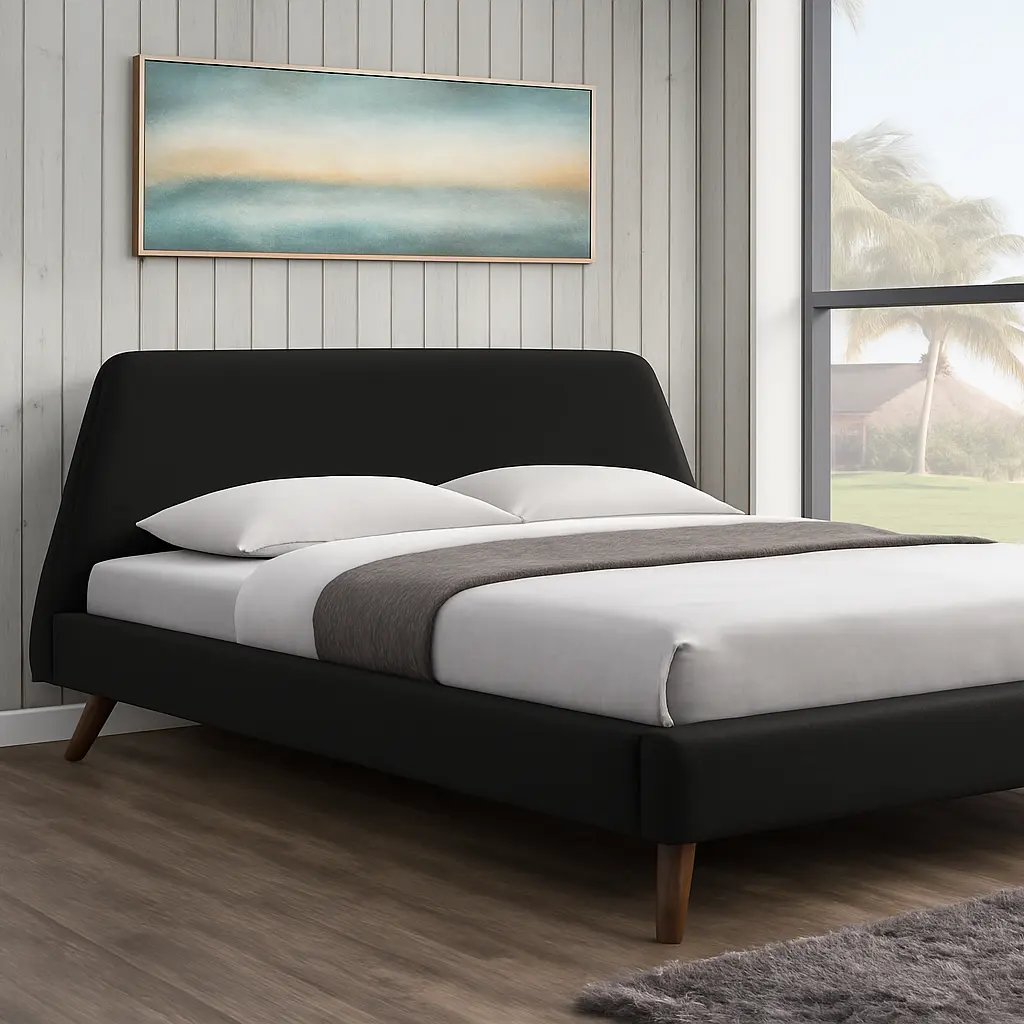 Raise the bar of your fashion style statement with Carrington Upholstered Bed by Asghar Furniture. It brings a serene sense of elegance to your bedroom with its minimalist design. Built using premium MDF wood that adds a durability factor to its design. Carrington Upholstered Bed is unique with its inward diagonal headboard and outward tilted legs. Makes a perfect modern blend.