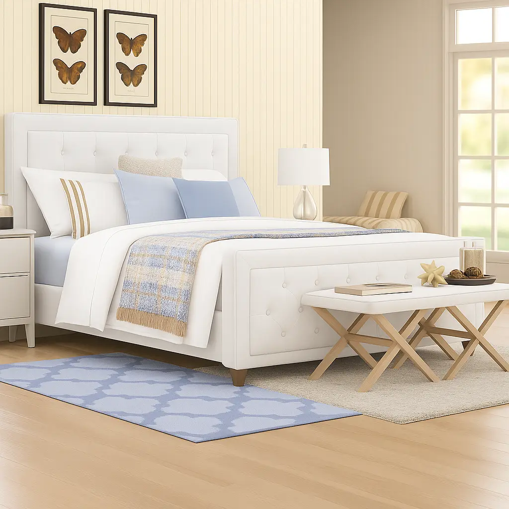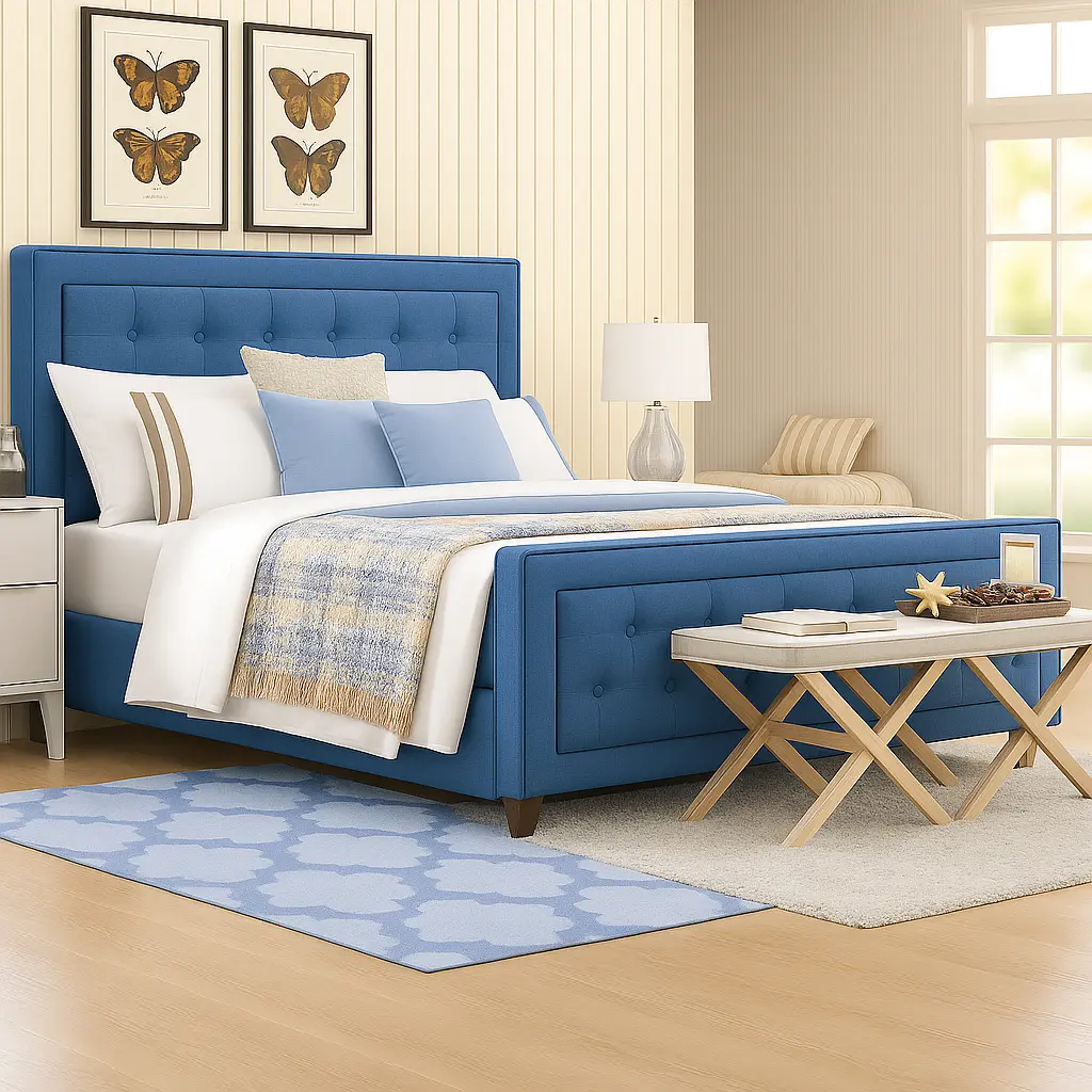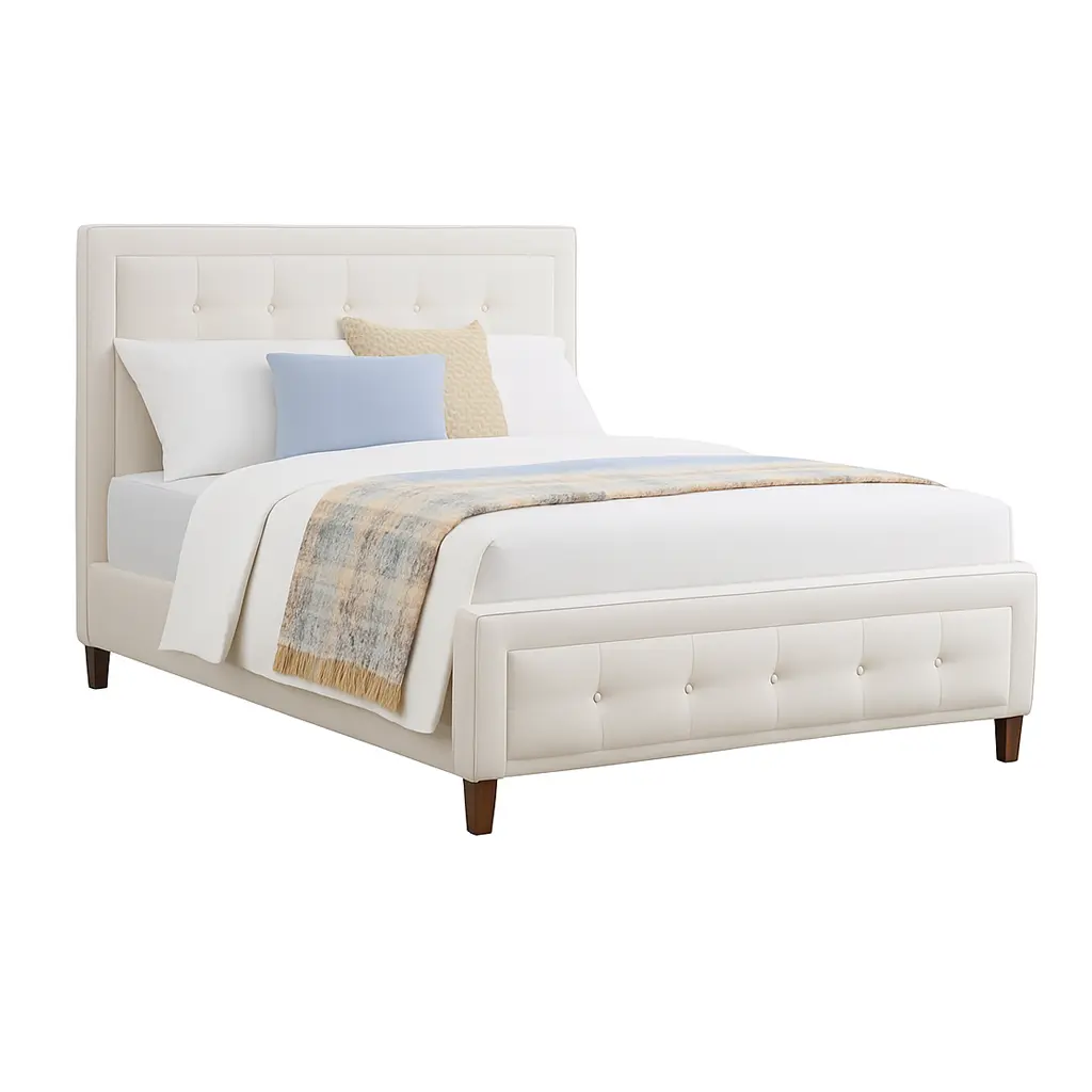 - Button-tufted headboard and footboard face with foam padding