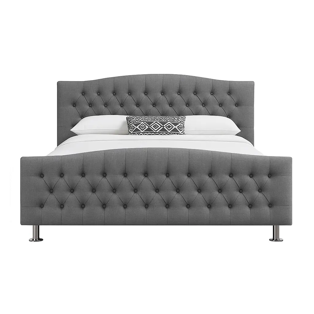 Gisele Tufted Designer Bed by Asghar Furniture, is a low-profile platform bed constructed with high quality MDF wood frame and upholstered with the right quality fabrics. Gisele Tufted Designer Bed embodies a beautifully button tufted headboard and footboard that are both padded with fine foam that not only just gives the perfect look but also provides the perfect amount of comfort.