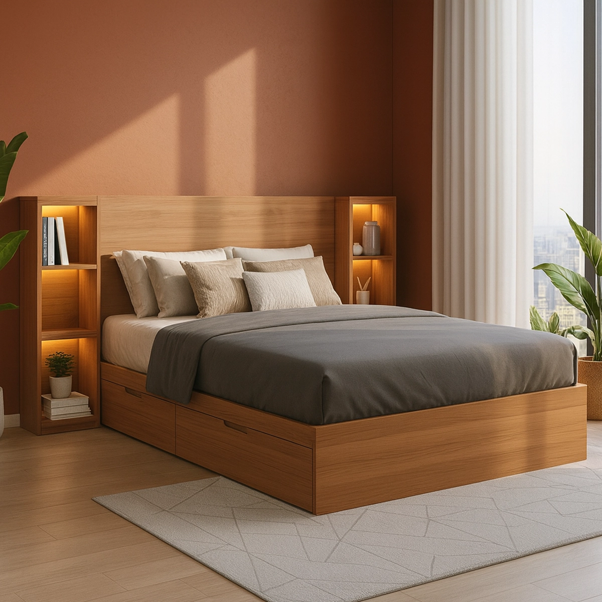 The LuminaStorage Kids Bed combines built-in illuminated shelves with spacious under-bed drawers to create a modern, organized sleep space for kids and teens. Its warm wood design and durable, child-safe construction make it a stylish, space-saving solution for clutter-free bedrooms.