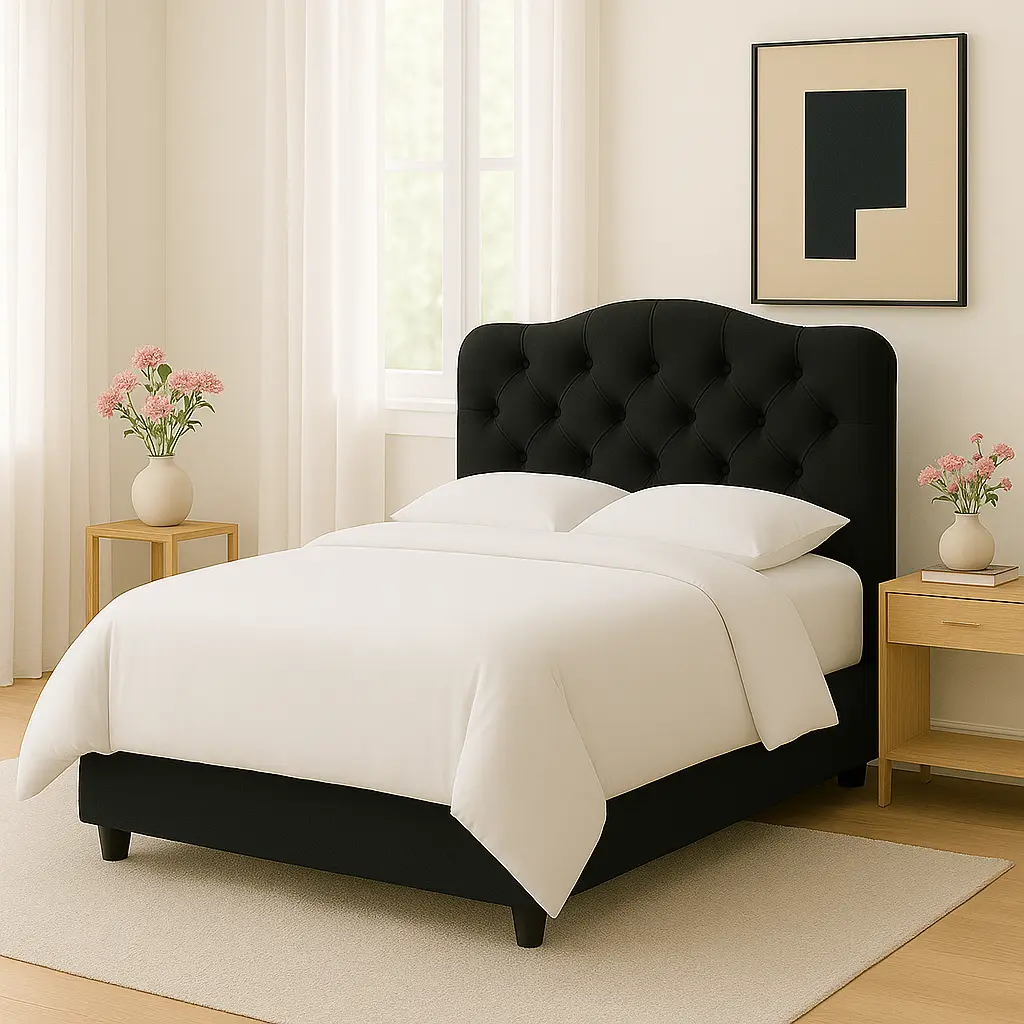 Highlighting comfort and style Xari Prime Tufted Bed is a traditional-style design by Asghar Furniture, Xari Prime Tufted Bed features deep button-tufting on the headboard with non-linear design. Padded with soft fillings this masterpiece is sure to give you a hard time getting up in the morning.