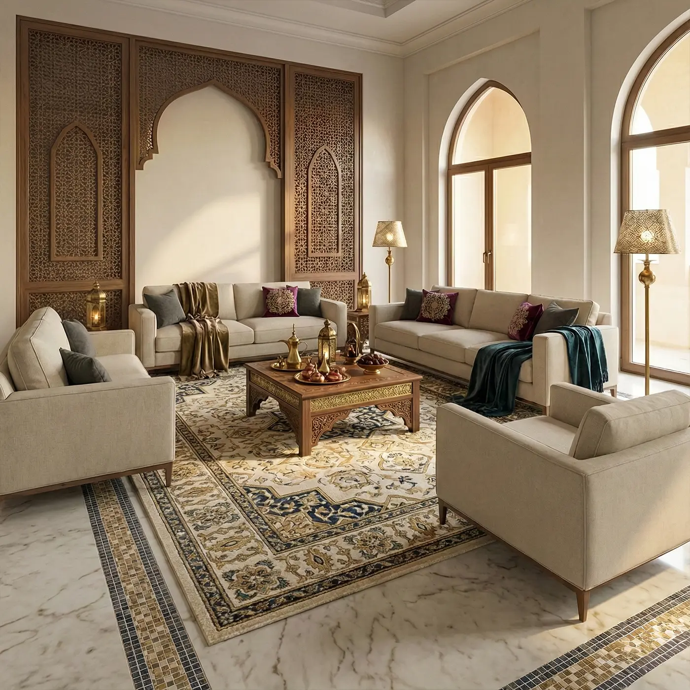 The Diyafa Majlis by Asghar Furniture celebrates refined Emirati hospitality with timeless elegance. Designed for UAE homes, it features generous seating, soft neutral upholstery, and balanced proportions; perfect for formal gatherings, offering superior comfort, premium craftsmanship, and a warm, inviting atmosphere for distinguished majlis spaces.