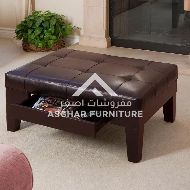 Aby Coffee Table, Asghar Furniture featuring the new style Aby storage ottoman coffee table that features slide-out drawer for remotes and doubles as coffee table in smaller living rooms.