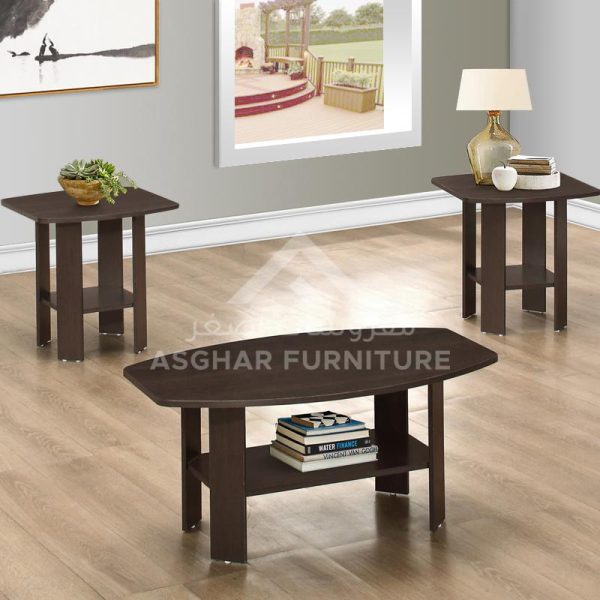 Update your living room with this 3-piece Glaze Table Set by Asghar Furniture. Featuring a coffee table and two matching end tables finished in dark wood-look. this set can be matched with any of your decors.
