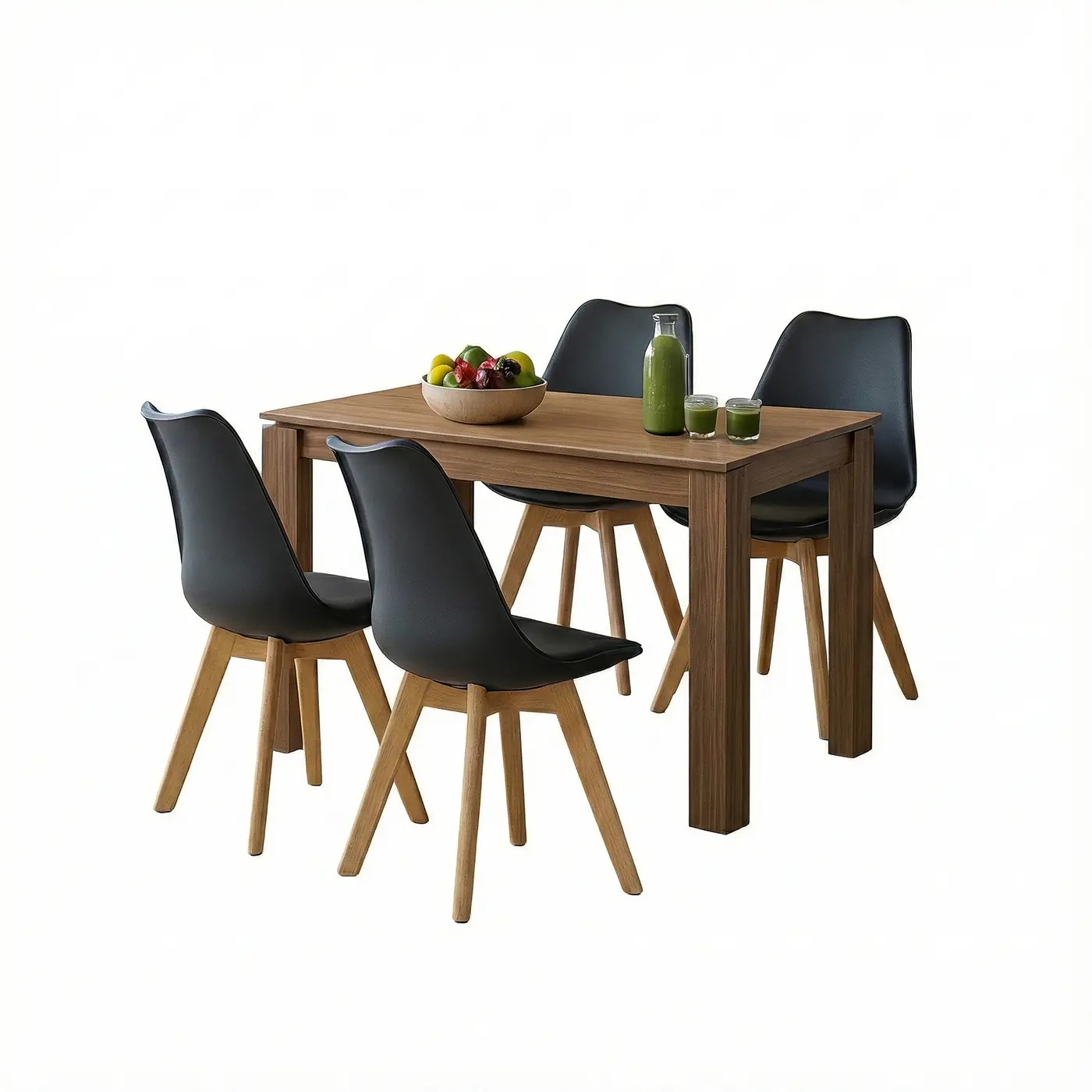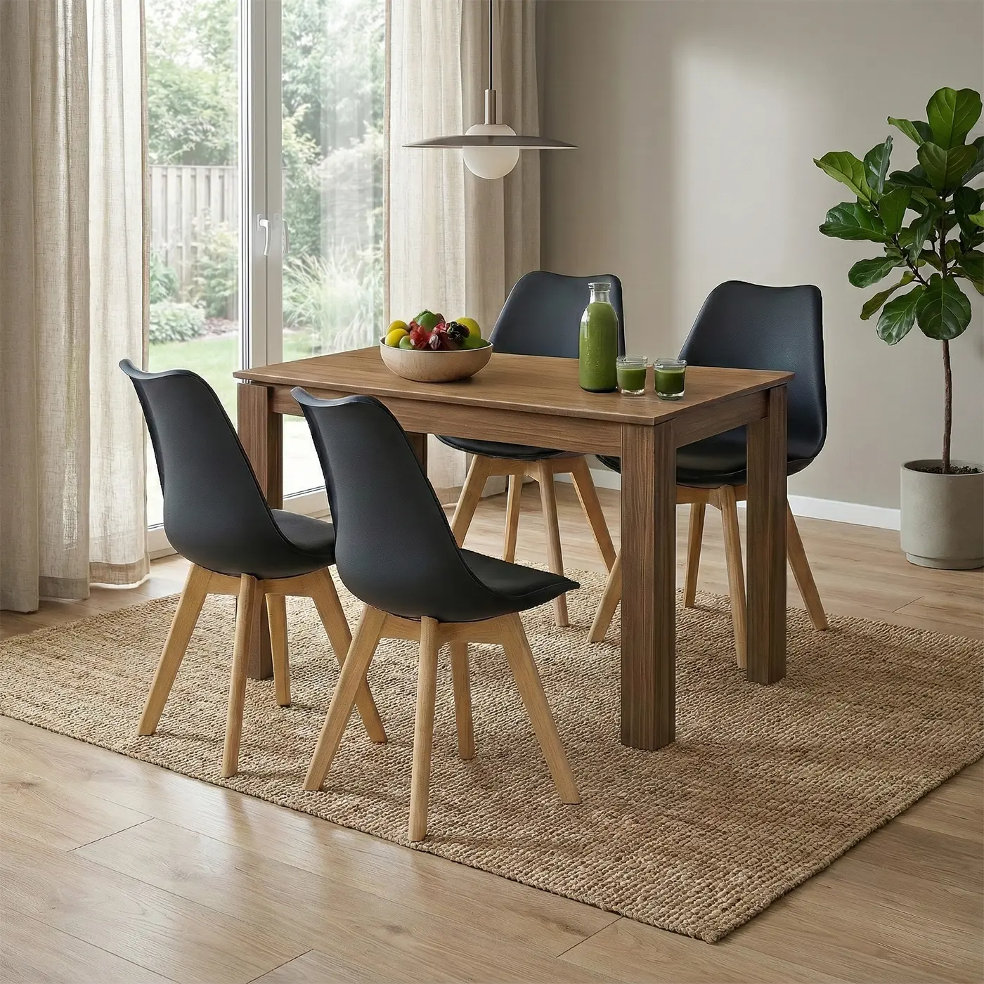 The AxisWood Dining Set brings modern simplicity to your home with its solid wood table and ergonomically contoured chairs. Blending warm oak tones with sleek contemporary design, this 4/6-seater set is perfect for kitchens, dining rooms, and compact spaces. Durable, easy to clean, and stylishly minimal; ideal for everyday family dining.