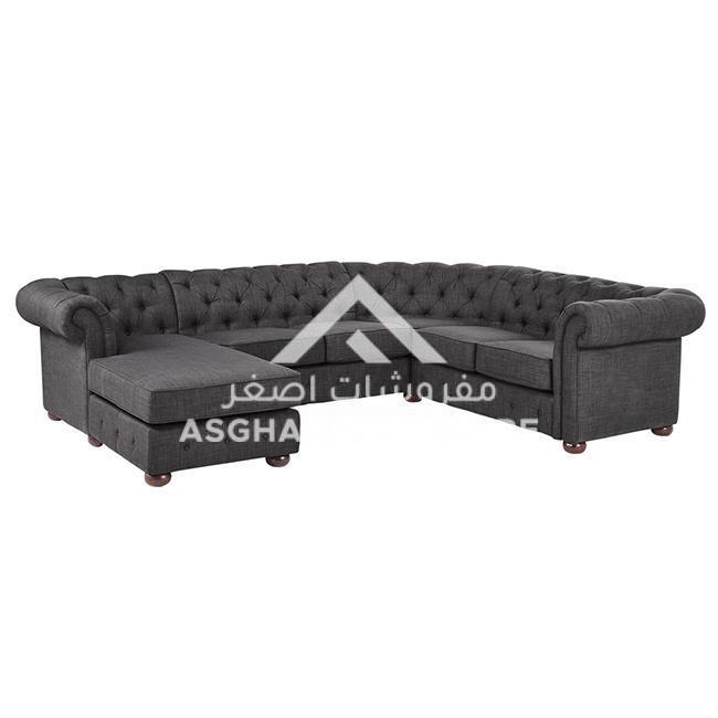 Brent Sectional Sofa: Add luxurious seating to your living area with the Brent chesterfield U-shape sectional with chaise from Asghar Furniture. Button tufting along the low, rolled back and arms adds timeless sophistication to the design. The right or left facing chaise is perfect for kicking back and watching TV or reading a book.