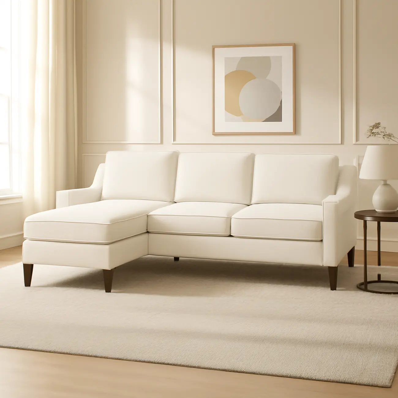 Elissa Sectional Sofa by Asghar Furniture gives you the option to switch up your living room look in an instant. Its ottoman, loose chaise cushion and sleek design allow you to rearrange your space with ease by simply flipping over the two pieces and voila! You’ve got a whole new look.