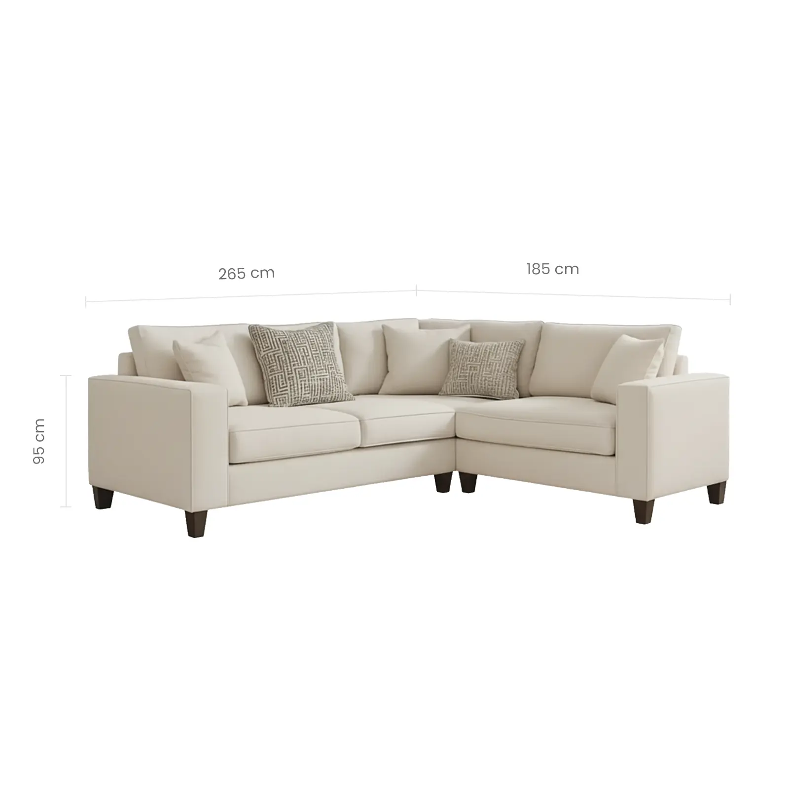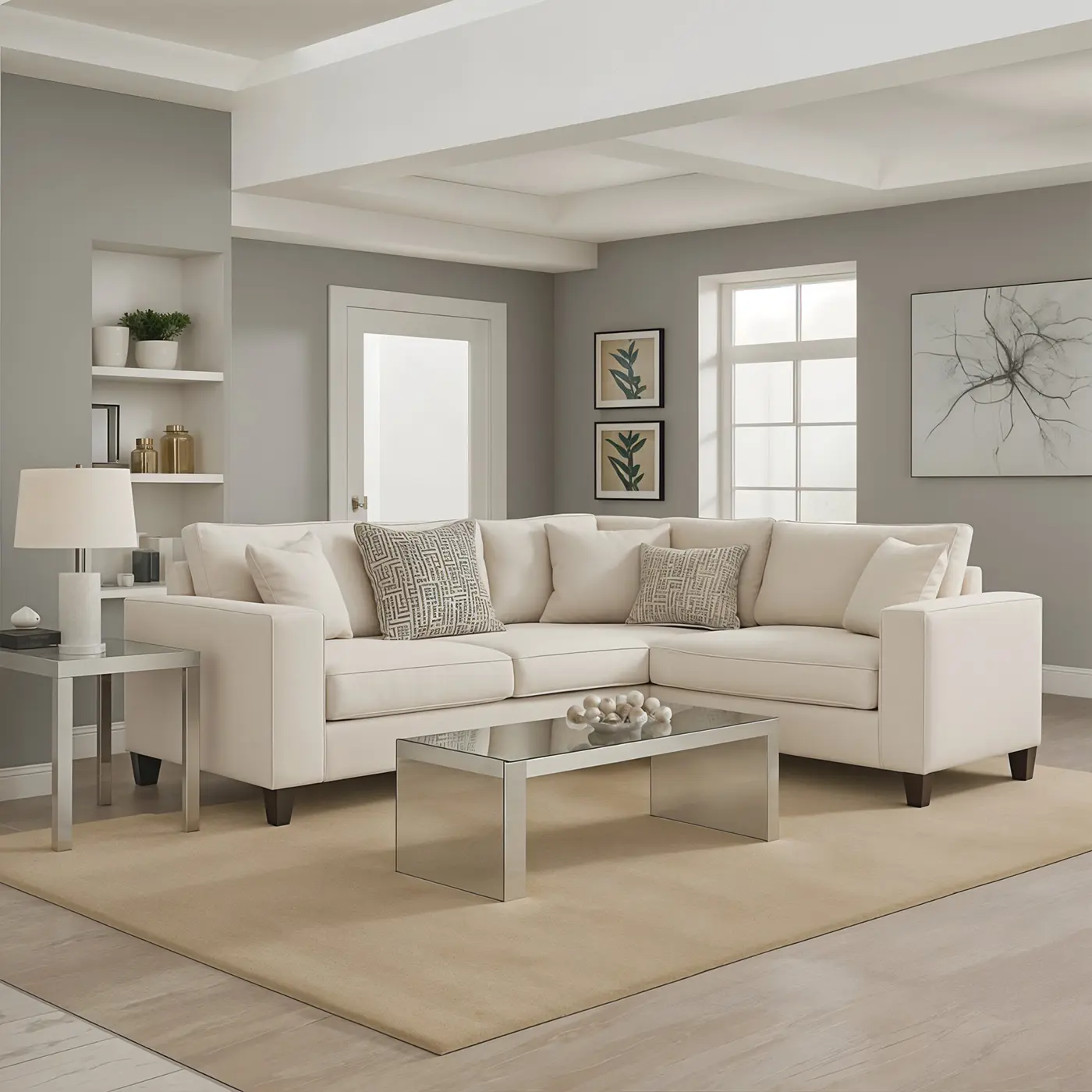 The Ivory Luxe Sectional blends timeless design with modern sophistication. Upholstered in a rich ivory fabric, this L-shaped sectional is perfect for both stylish hosting and everyday lounging. Clean lines, plush cushions, and matching accent pillows elevate its comfort and charm, while tapered wooden legs add a touch of structure. Ideal for contemporary and classic spaces alike, the Ivory Luxe transforms your living room into a serene and polished retreat.
