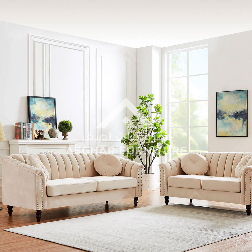 - Velvet upholstery, Channel tufted back