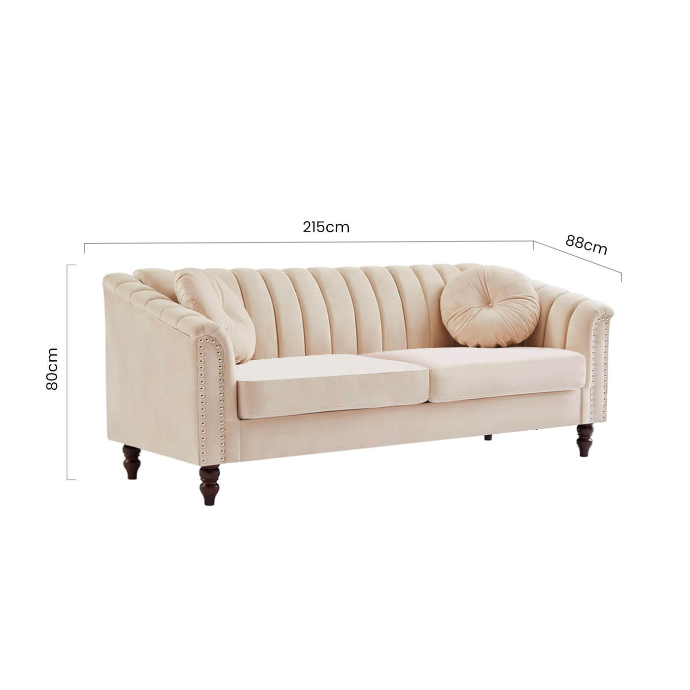 - Size 3-Seater Sofa: 215cm (W) x 88cm (D) x 80cm (H)