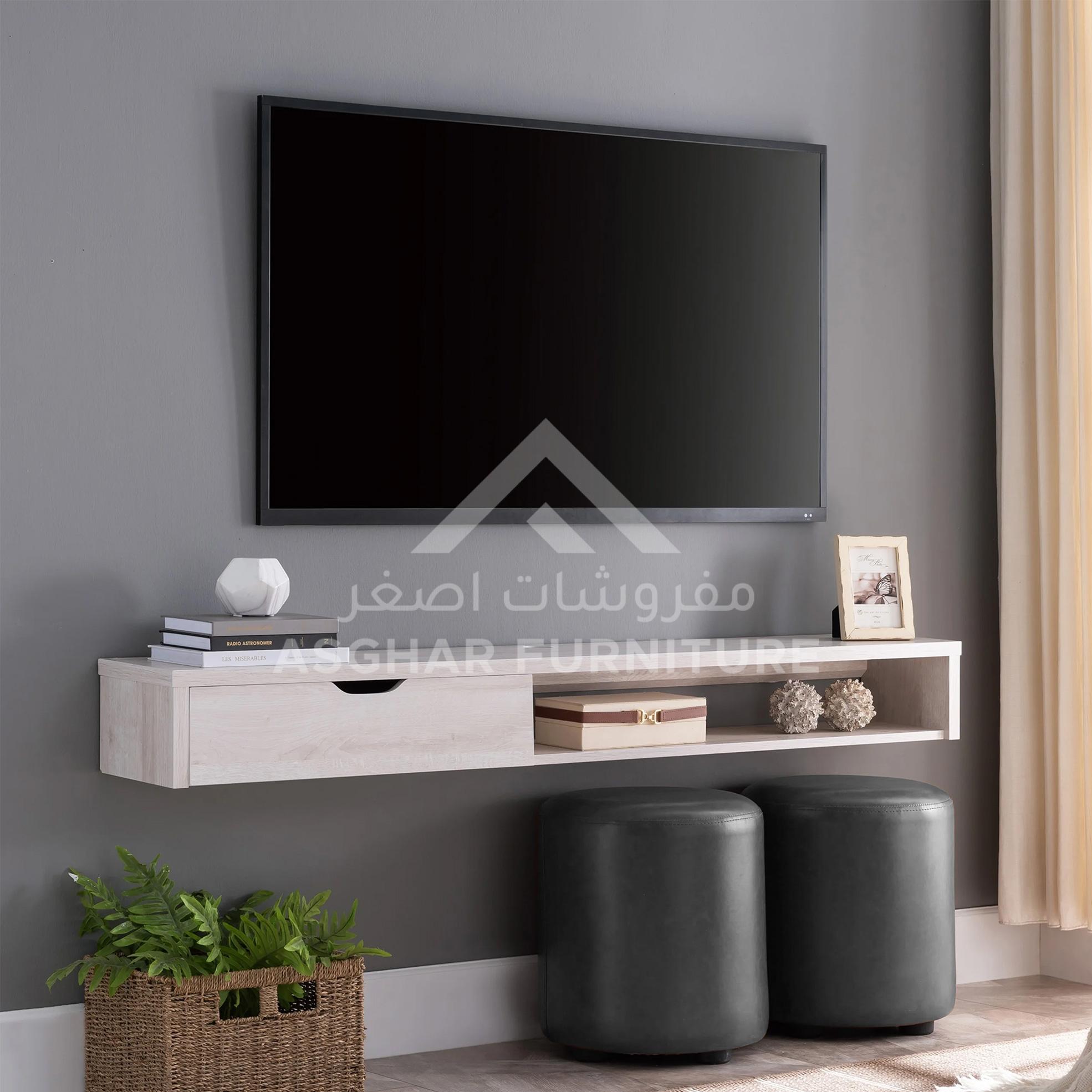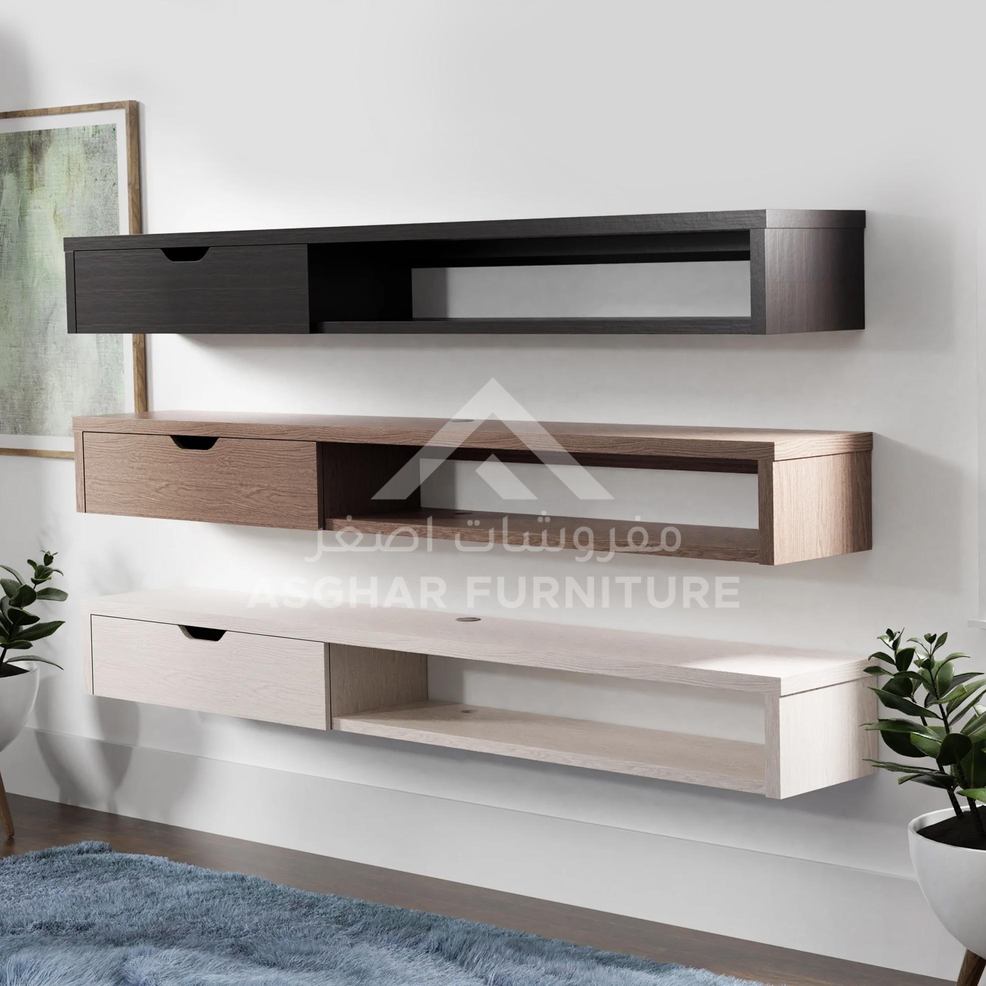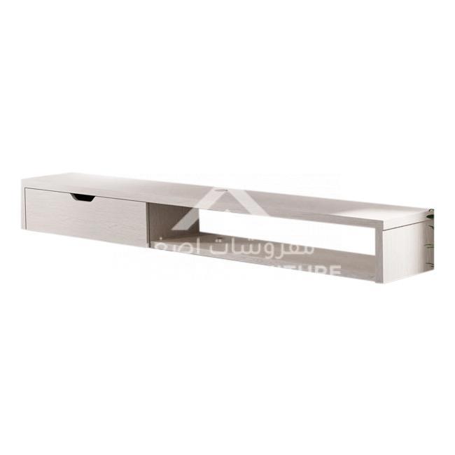 A slim addition to fit any living space, this Floating Wall Media Console entertainment unit features a wall-mounted design. A single drawer provides privacy while the open shelf makes it easy to place electronics, especially with the built-in cord management hole on top.